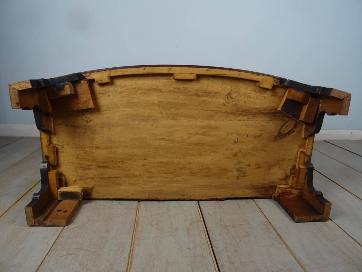 Condition: There is a small piece of veneer lacking from the back right hand side (see photo). The handles have been changed at some time in the past.