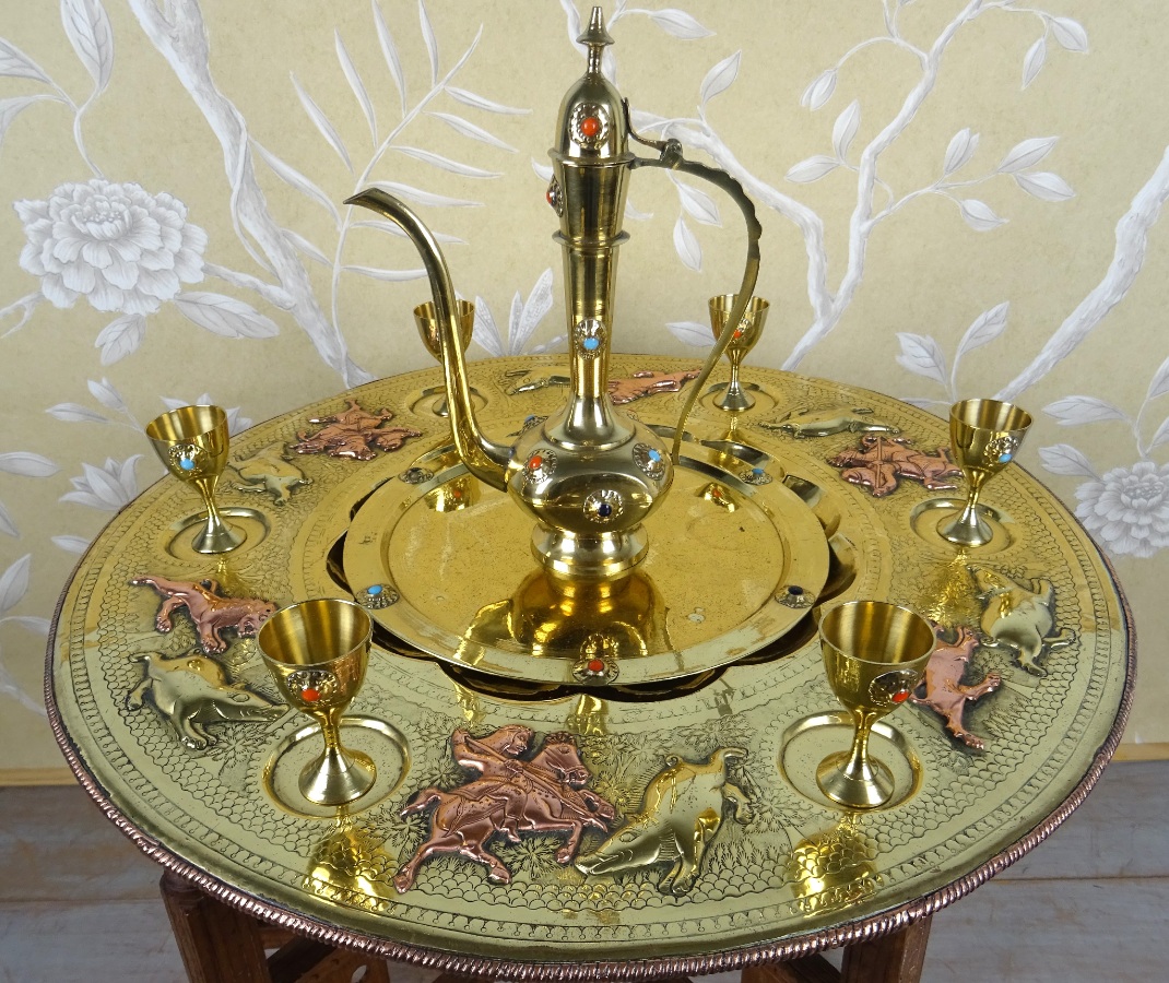 This tea/coffee table comes with its ewer and 6 goblets decorated with stones.