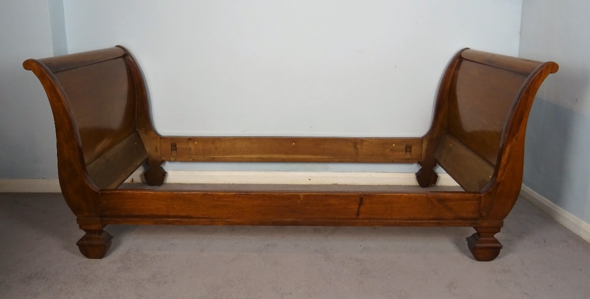 A fine Italian single sleigh or lit en bateau bed, featuring sleek curved bedheads. This bed shows wonderfully rich colour and patination.
